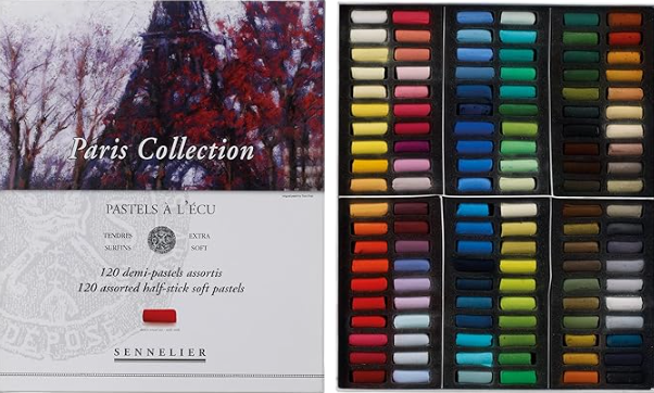 Extra-Soft Pastels are comfortable to hold and invite you to cover large areas with a lush, luxurious color. Each pastel is composed of high quality pure pigment and a natural transparent binder. The exceptional brightness is the result of the pigment and the natural mineral fines discovered by Sennelier in 1905 and that have been used ever since.